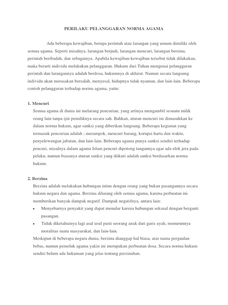 Contoh Pelanggaran Norma Agama Dan Kesusilaan