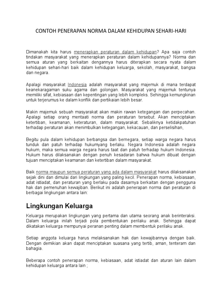 Contoh Penerapan Norma Dan Peraturan Di Lingkungan Masyarakat