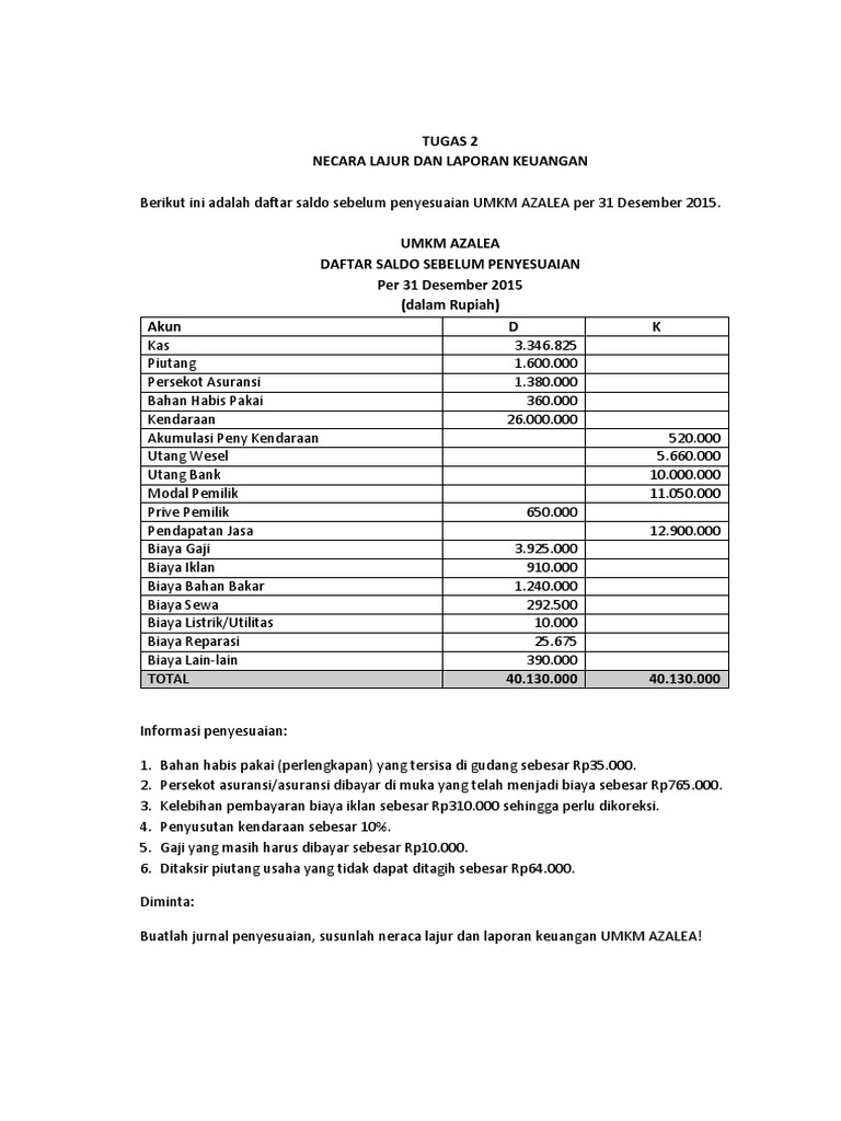 Pdf Basis Data Tugas Neraca Saldo Sebelum Penyesuaian