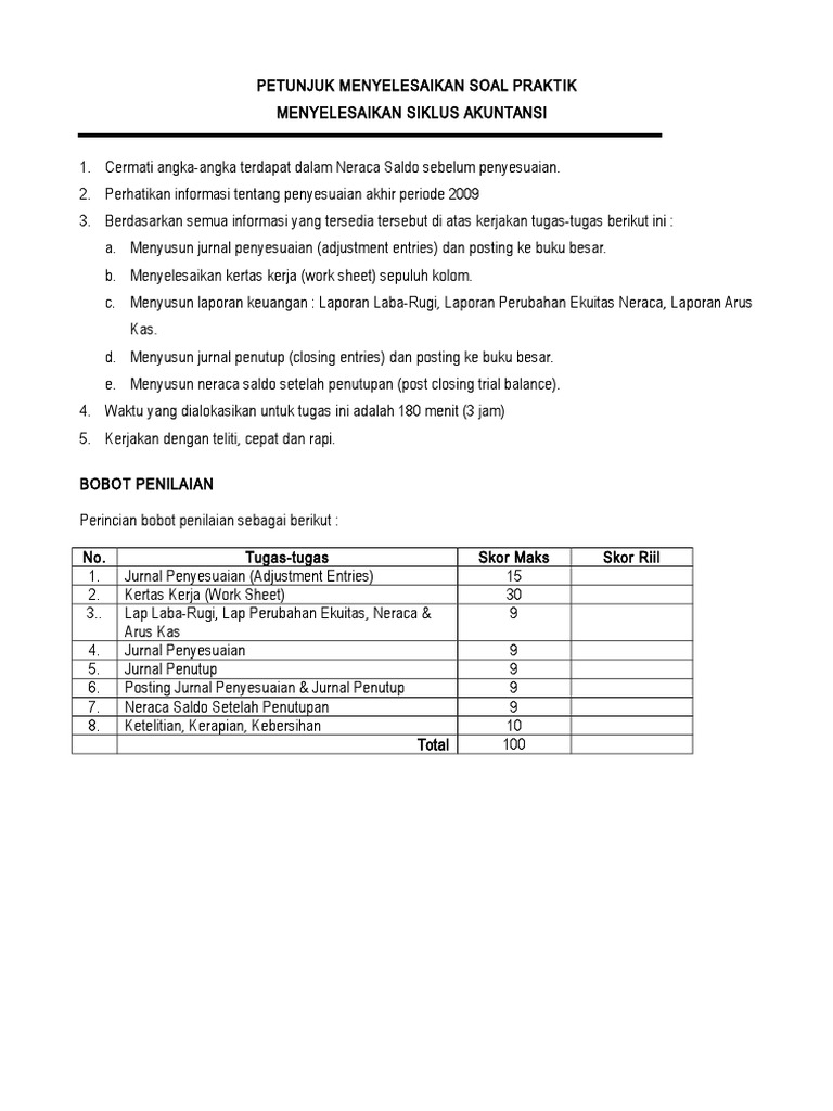 Latihan Soal Penyusunan Kertas Kerja